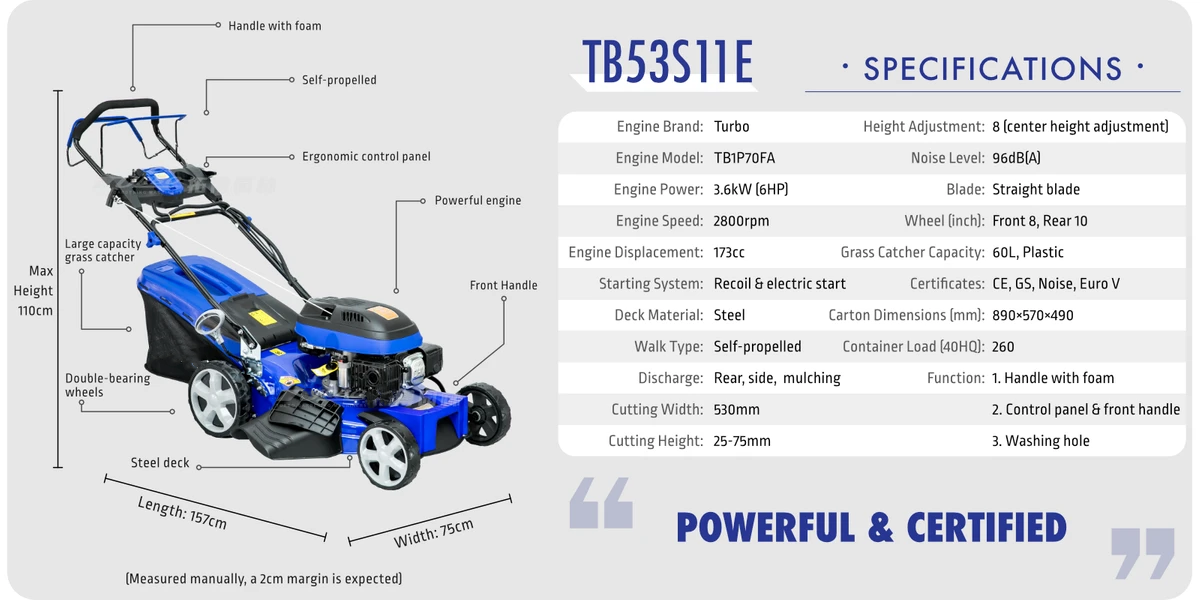 3600W Lawn Mower Wholesale 530mm Cutting Width Hand Push Lawn Mower